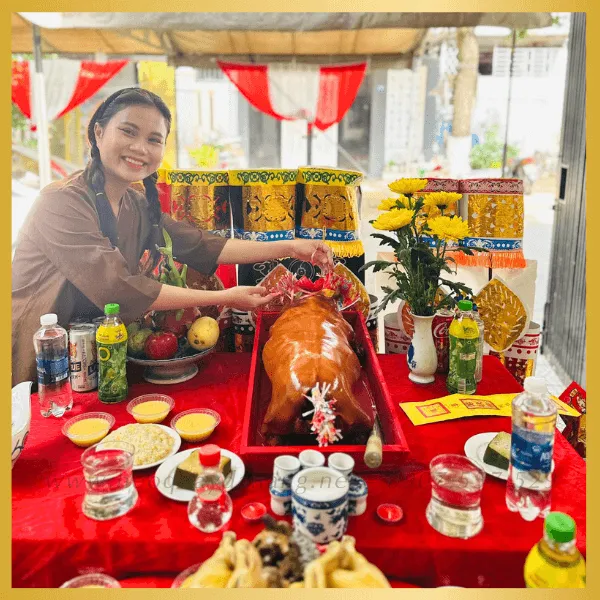 - Trang trí nơ đỏ/hoa (theo yêu cầu) cho mâm cúng đẹp.