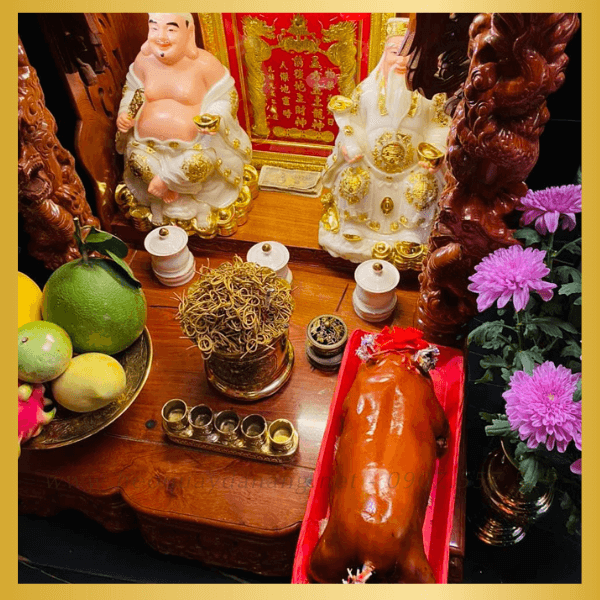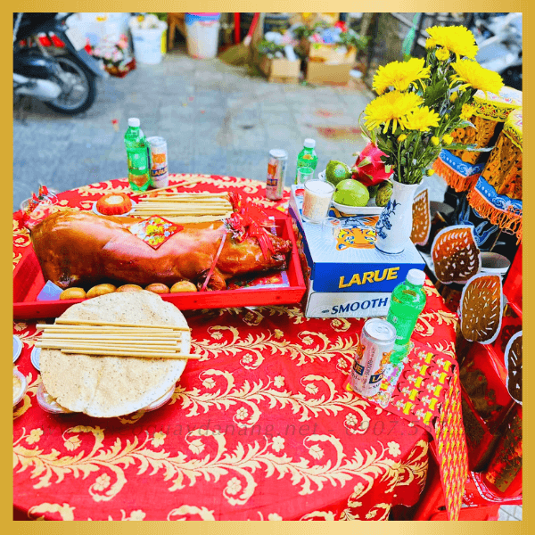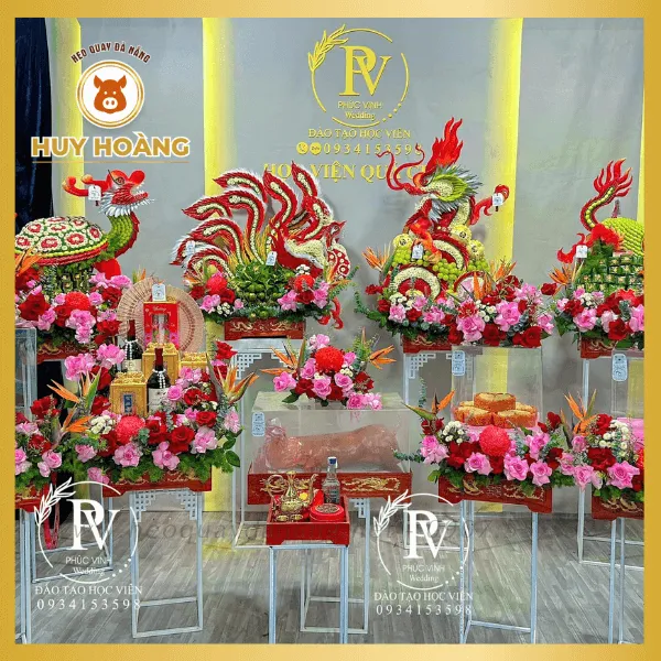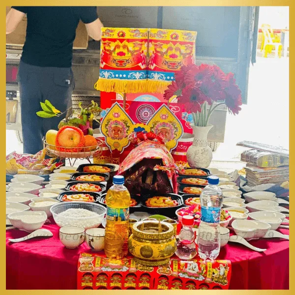- Trang trí nơ đỏ/hoa (theo yêu cầu) cho mâm cúng đẹp.