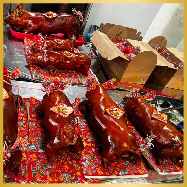 - Cam kết: Heo tươi sống, kiểm dịch, quay tại lò Huy Hoàng.